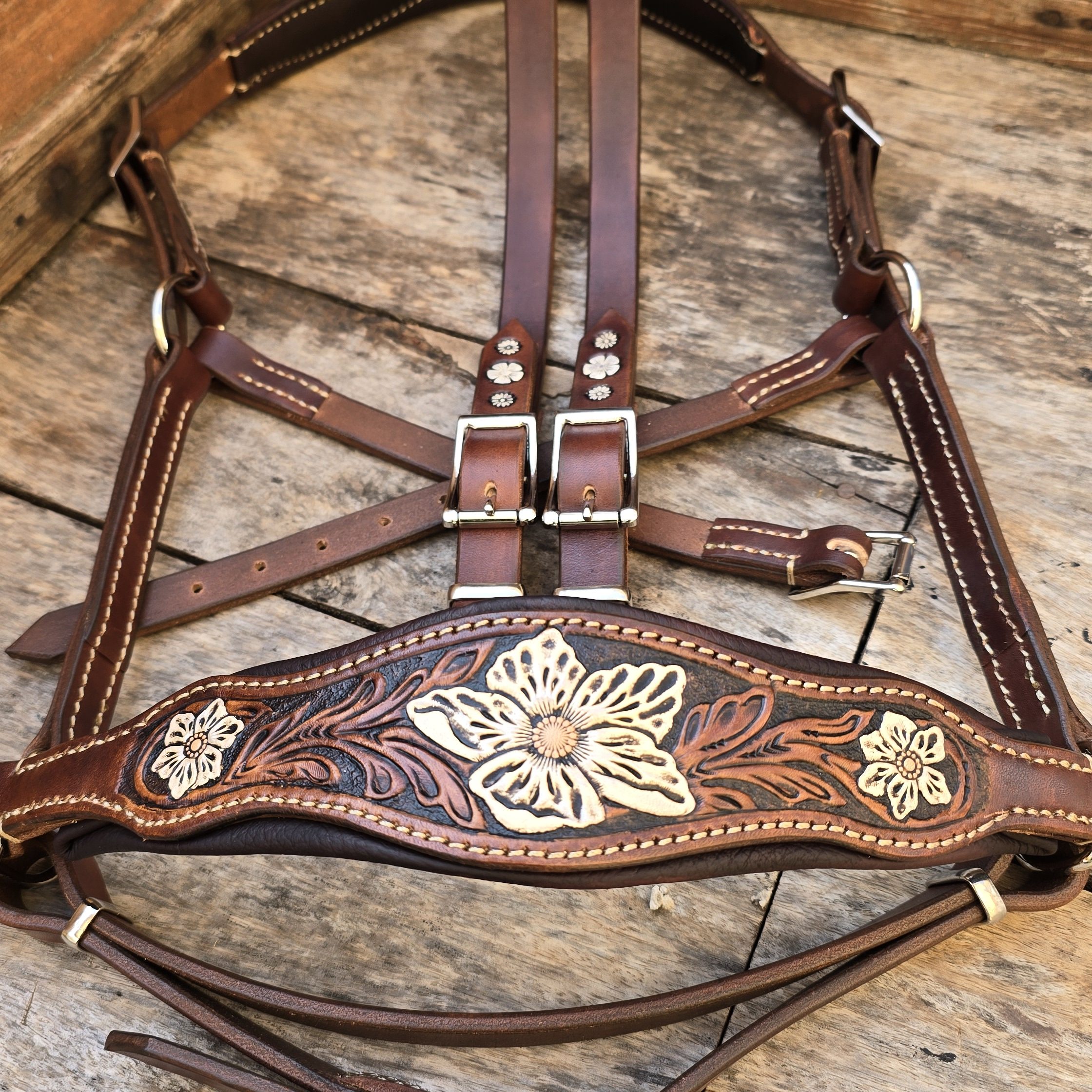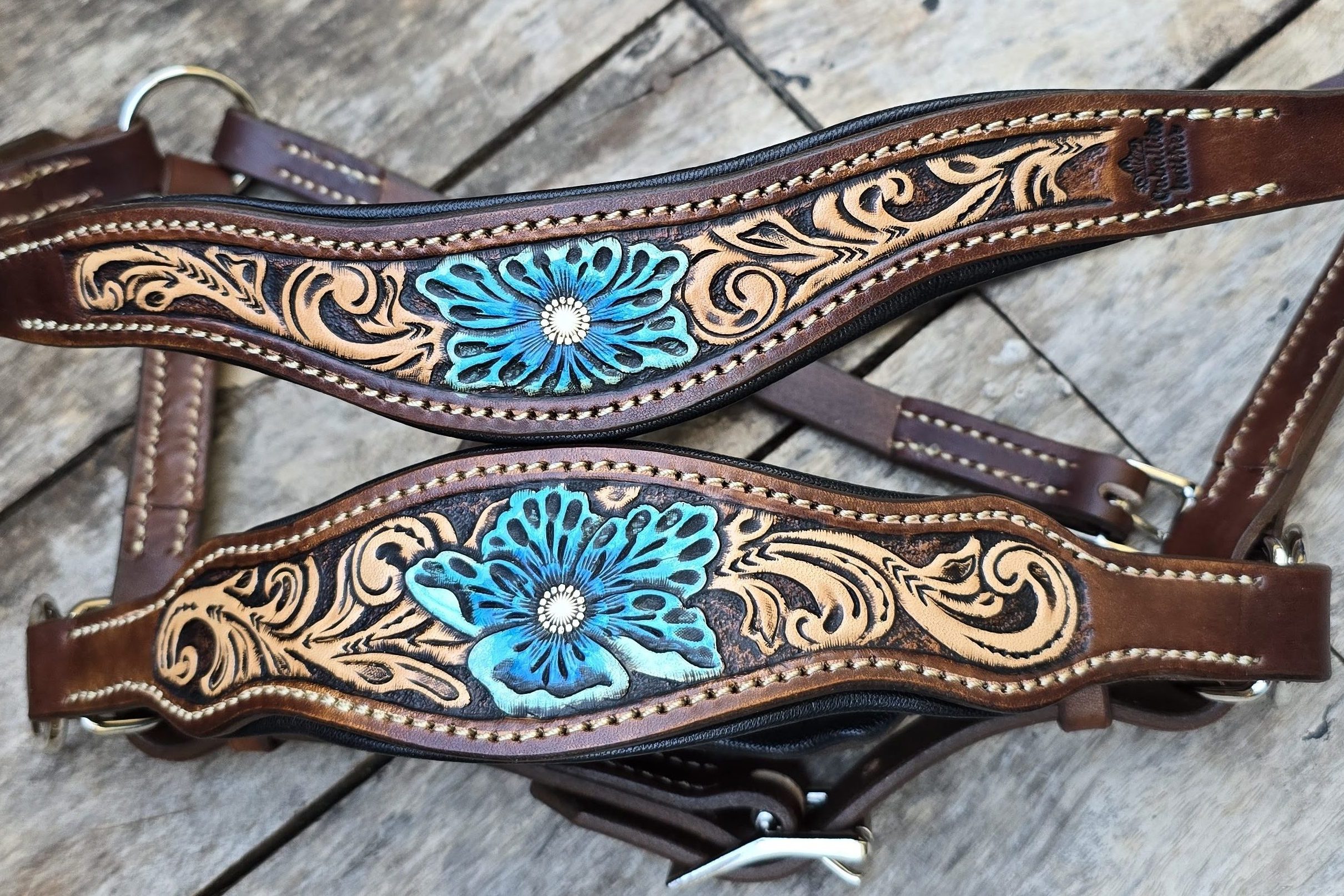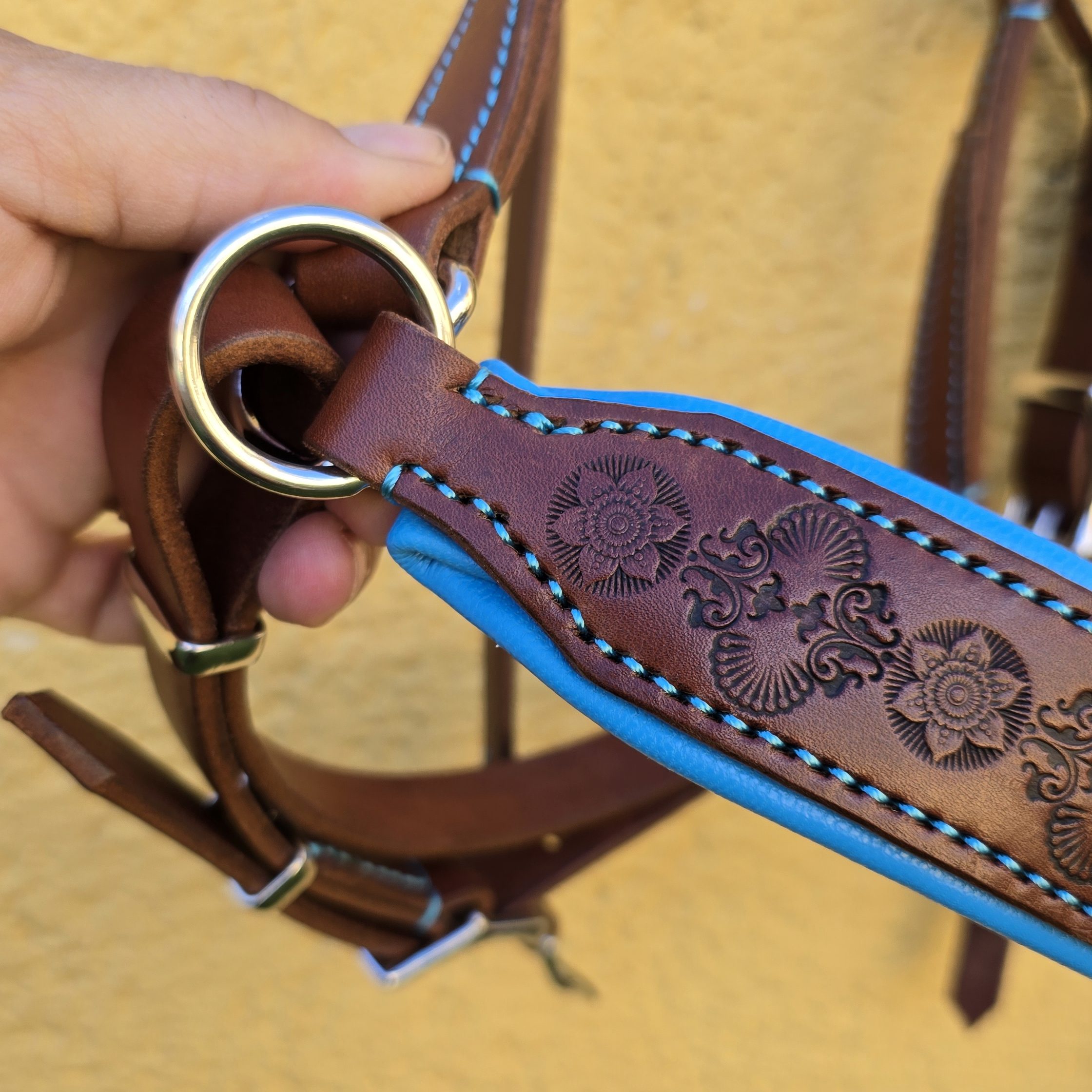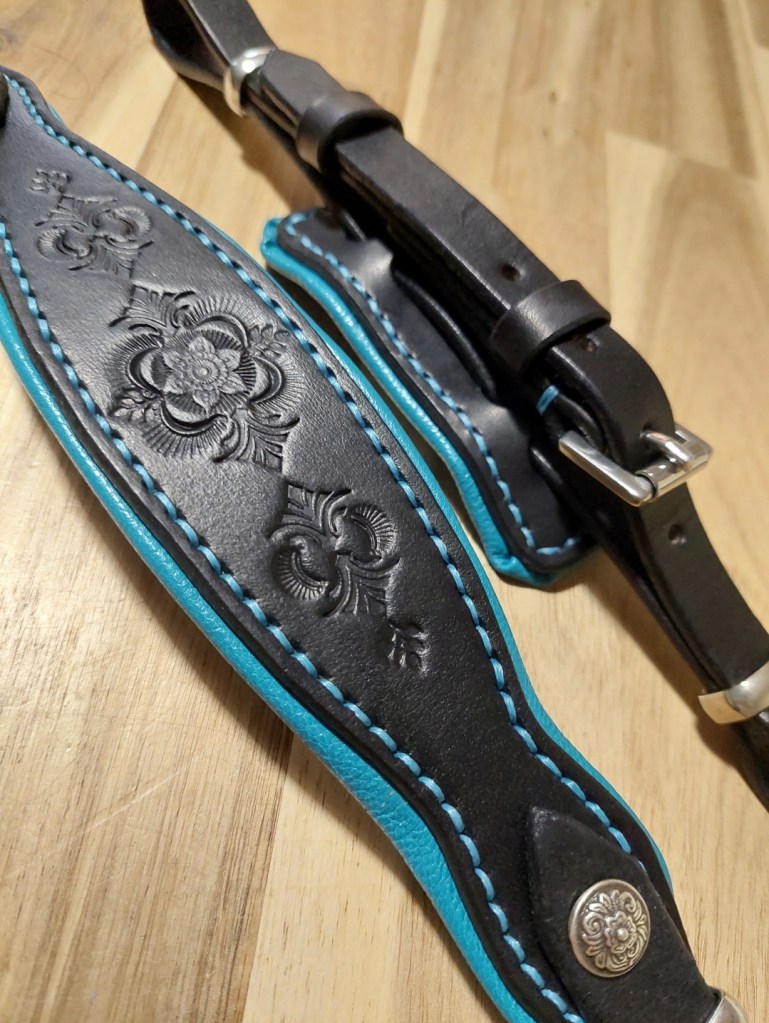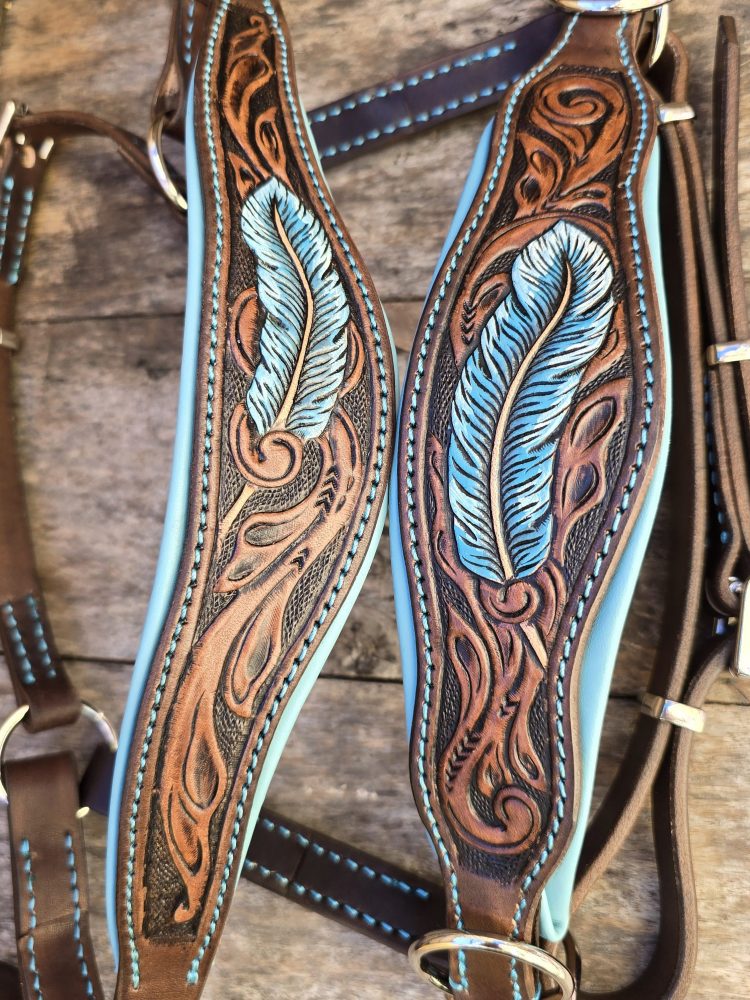These Stamped design bridles come with matching reins and feature my chin pad and anatomical headpiece